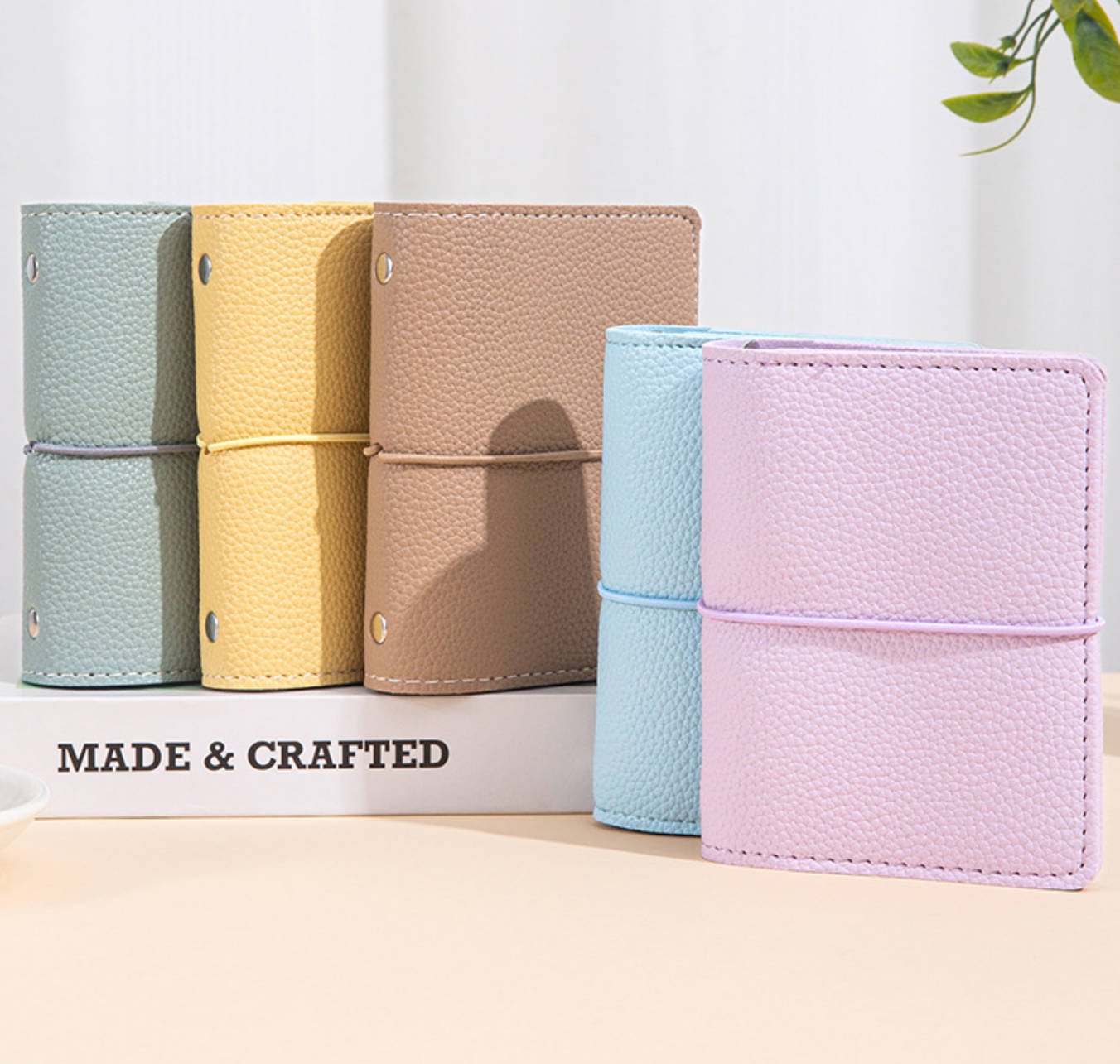 • Integrated card holder on the cover for convenient storage of notes or cards.